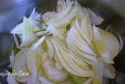 À parte prepara-se uma  cebolada dourada com os alhos e o azeite.